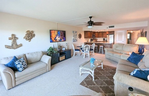 This charming one-bedroom, one-bathroom condo has everything you need to feel right at home. The full kitchen is a chef's delight, featuring upgraded cabinets and countertops, making meal prep a breeze. The living area offers comfortable Lazy Boy seating, perfect for unwinding after a day of fun. The bedroom is equipped with blackout curtains for those mornings when you just want to sleep in, ensuring a restful stay.