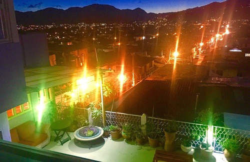 Gran Casa de 3 recamaras con baño privado cada una, quiza con la mejor vista de este pueblo magico, con enorme terraza donde Ud puede sentarse en los sofas o sillas y hay baño en terraza, 3 habitaciones con baño: 1 con king y sofa cama, otra con cama matrimonial y sofa cama y y la 3a. con 2 cama matrimoniales, cocina super equipada, a pocas cuadras del centro y todo cerca ( a una cuadra esta una plaza rodeada de cafes, restaurantes, panaderias, etc. Y a solo 4 cuadras esta el andador principal de la ciudad. Patio con: mesa, sillas, chimenea de jardin, macetas y areas verdes. Mucha luz, todo seguro. Ademas hay una chica de aseo que apoya diariamente a nuestros huespedes. Todos los servicios. Bienvenidos!