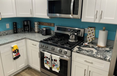 "Casa Del Sol" is an exquisitely clean stay. We have all NEW furniture. And never forgetting our four legged friends,we have some toys and a comfortable and clean yard. "Casa Del Sol" has security cameras, although it is peacefully quiet to rest.PLUS there is what you like near you.Located minutes from the attractions. *Disney Springs -2.4 Miles *Magic Kingdom -7.4