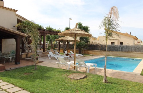 House with private pool very near to the sea.(OPTIONAL AIR CONDITIONING). Ideal to spend a great family vacation, also for nature lovers, the tranquility of the sun and the magnificent sandy beaches And if you like good eating, this is the place you have to choose for your vacation, since we have an exquisite variety of dishes cooked with products grown on our land, such as rice, olive oil, vegetables and fruits, and the fish and shellfish collected in our bayPRECIO 1 Mascota 25€ ; PRECIO AIRE ACONDICIONADO/ BOMBA DE CALOR: 35€ DIA, TAMBIEN HAY LA POSSIBILIDAD DE COGER LAS MAQUINAS POR SEPARADO. ESTA CASA DISPONE DE 5 MÀQUINAES OBLIGATORIO PAGAR LA TASA TURISTICA, EL PRECIO ES 2€ POR PERSONA Y DIA A PARTIR DE 16AÑOS