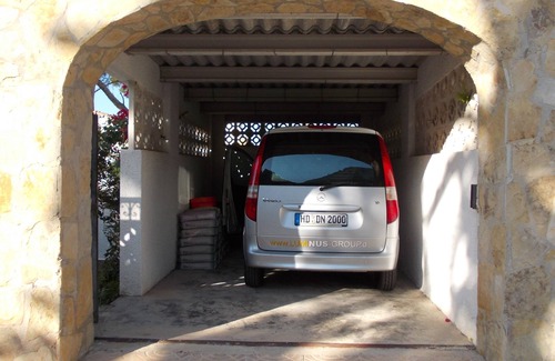 Enclosed, quiet house with large 50 m³ private pool, large terrace and garden, and a large barbeque and garage for 4 people. With sea views & Burgblick, at the foot of the Montgo mountain, above the town of Denia. Areal 1. 000 m² with large, shady pine trees. The port (Ibiza ferry) about 3 000 m. Facility enclosed with walls. House has an open fireplace and air conditioning, bathroom with tub and washing machine. 2 bedrooms for 2 people plus 2 emergency beds. Outdoor shower & additional outdoor kitchen in the Barbeque (for up to 10 people). vacant, privately used attachment if required (new construction) with 1 bedroom & bath Extra bookable (then for 6 persons). Bikes, racing bikes, cars, vintage cars, sports cars, convertibles, motorcycles, etc can be booked additionally. Prices for 4 persons incl. Water, electricity, laundry, taxes, etc. German support on site. German neighbors. Weekly pool maintenance.