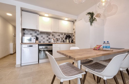 Enjoy a comfortable stay in this cosy one-bedroom apartment, ideal for couples or small families seeking relaxation and comfort. The property has been carefully decorated with a modern and functional style, offering all the necessary elements for a worry-free stay.It features a spacious and bright bedroom with a double bed, natural decor. The bathroom is completely renovated, with elegant marble-effect tiles, a spacious walk-in shower, hairdryer and front-loading washing machine.The open kitchen has modern appliances (dishwasher, oven, microwave, electric kettle, etc.), ample storage space and everything needed to prepare your favourite dishes. The adjacent dining area has a wooden table with comfortable chairs, perfect for enjoying meals at home.Relax on the terrace equipped with garden furniture where you can sunbathe, read or enjoy an outdoor dinner while overlooking the pool. The surroundings are quiet and perfect for disconnecting.Its location is excellent, close to supermarkets, beaches and all the services necessary for a worry-free holiday.A set of bath and pool towels is provided per guest.