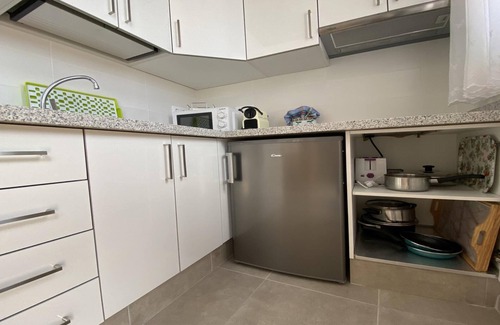 La Puntilla Nº 1 is a new studio. It contains of a double bed, a bathroom with shower and hairdryer, a fully equipped kitchen, a small living area with access to the internal terrace (no sea view). The terrace is furnished with table, chairs and sun loungers, an outside shower and a washing machine. The studio has a second private terrace accessed via the stairwell. From here you can enjoy the best views of La Puntilla beach and the sunset. The studio also offers high-quality double glazing on the windows, the upper windows can be opened electrically, air conditioning, WiFi and satellite TV. If you are looking for a new, cozy, bright place by the sea, this studio offers you the opportunity to open the door and be right on the beach.