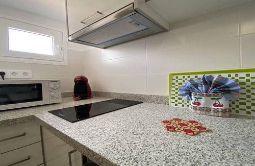La Puntilla Nº 2 is a new studio. It contains of two single beds in the sleeping area, a bathroom with shower and hairdryer, a fully equipped kitchen, a small living area with access to the internal terrace (no sea view). The terrace is furnished with table and chairs, an outside shower and a washing machine. The studio has a second private terrace accessed via the stairwell. From here you can enjoy the best views of La Puntilla beach and the sunset. This terrace is furnished with table, chairs and sunbeds.