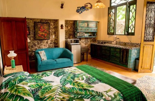 Casa Lotto has four private rooms, each with its own private bathroom (Kahlo, Barroco, Amate, Talavera) and two studios (Jade Maya, Ixchel). In addition to the private bathroom, the studios also have a small private kitchen.
