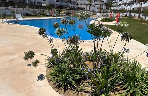 Lovely and cheerful apartment with communal pool in San Juan de los Terreros, Andalusia, Spain for 6 persons. The apartment is situated in a holiday complex with bar and restaurant, in a coastal and mountainous area, close to supermarkets and a tennis court and at 500 m from the beach.