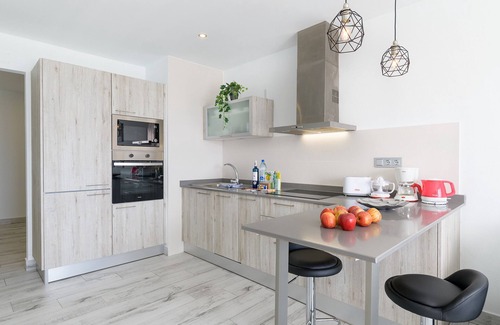 Casa Mercedes Apartment 3 is a modern and cozy vacation home located in the heart of Varadero (Old Town) in Puerto del Carmen. Its privileged location allows you to enjoy stunning views of the sea and horizon, with the port just a few steps away and beaches like Playa Grande within walking distance. Additionally, it is surrounded by a wide range of leisure options, making it the perfect place for a seaside vacation.The apartment features a bedroom with two single beds joined and dressed as a double bed. Upon request, with at least 48 hours' notice prior to arrival, the beds can be separated into two single beds. The bathroom includes a shower, hairdryer, magnifying mirror, and quality toiletries (gel dispenser, shampoo, and moisturizing cream). The spacious living room is equipped with a TV offering English and European channels, Wi-Fi, a dining area, and a fully equipped kitchen. A terrace with sun loungers and outdoor furniture allows you to relax and enjoy sea views.Parking space rental is available upon request and subject to a daily rate. For pricing and availability, please contact us directly.The apartment has air conditioning in the living room, which operates with a 1 euro coin meter. Check-in: From 3:00 PM Check-out: Until 11:00 AMBefore your arrival, you will receive a link to complete our digital online check-in. Once completed, you will receive our personalized guide with all the information about the accommodation, additional services, arrival instructions, and local recommendations to help you make the most of your stay.Upon arrival, you will receive a welcome package with water, milk, coffee, tea, cookies, and other small items. We are also available throughout your stay for any questions or assistance you may need.The accommodation is self-catering but includes sheets, blankets, bath towels, beach towels, and kitchen cloths. In the bathroom, you’ll find a travel-sized hand soap, moisturizing cream, and a gel/shampoo dispenser. An extra set of bath towels and sheets is also provided. The initial cleaning service has a fixed cost, reflected in your reservation. If you would like additional cleaning during your stay, please contact us for more information and rates.Car rental:We recommend booking a car in advance due to high demand in Lanzarote. We collaborate with a trusted local company that offers special conditions. If you would like us to arrange your car rental, just send us your flight details.