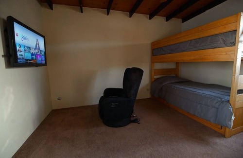 Classic Spanish/Mexican style house with vaulted ceilings and exposed wooden beams. Downstairs the living room has two large comfortable sofas and a large dining table that seats eight. In the same open concept kitchen is an island that can seat three more people for family fun size gatherings. In the kitchen sits a working vintage stove. Also downstairs, a tv room, a bedroom and a full bathroom that's has been redone in classic Mexican azulejo for added charm. Up stairs you will find three more bedrooms. Two of them have queen size beds and the middle room has a set of bunk beds and a tv. There is gated/secure parking where two to three vehicles can fit. There is free cable in the tv room and free wifi in the entire house. TV with netflix can be viewed from the master bedroom upstairs. My sister in law lives in the apartment on the premises and can help you with any issues you might have. There is a small patio outback and a bbq/ grill in front of the kitchen for those who wish to use it. It can also sleep a few extra people on those three sofas downstairs. House is stocked with unexpected necessities and lots of kitchen utensils for full on cooking and for staying in if you wish.