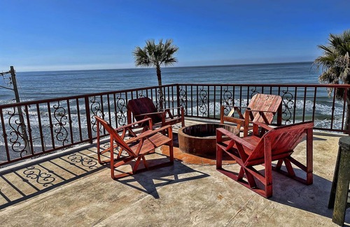 Oceanfront property; surrounded by the Pacific Ocean. Just south of Rosarito and two hours from San Diego, you can enjoy all the amenities of a luxury home with the serenity and beauty of Baja. Authentic Mexican Saltillo tile, and artisan decorations such as Oaxacan fabrics and Sonoran carvings. Custom mahogany wood floors and hand made fire places; hand crafted hacienda style furniture, modern conveniences such as flat screen TV’s in every room with,Direct TV, Netflix HBO, cinemax, PPV (games/fights). 180˚ view of ocean, bay, and coastline. Rooftop party area with entertainment for up to 35 guest. Living, and master bedroom with 180˚ full ocean view and city lights of Rosarito Bay. The breathtaking views from this home will make you never want to leave. You'll enjoy watching the waves, admiring the spectacular sunsets and the easy beachfront access. This is great for families looking for some quiet quality time, for couples seeking a romantic escape, honeymooners, as well as just some peace and quiet for the individuals and friends that just want to relax.