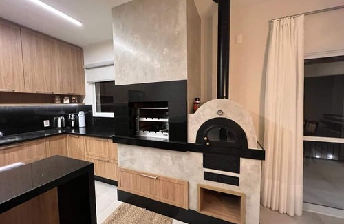 The planned kitchen has: refrigerator with freezer, brewer, cooktop stove, electric oven, pizza oven, charcoal grill, microwave, air fryer, electric tap, sandwich maker, electric kettle, crockery and cutlery, glasses and bowls and kitchen utensils complete.
