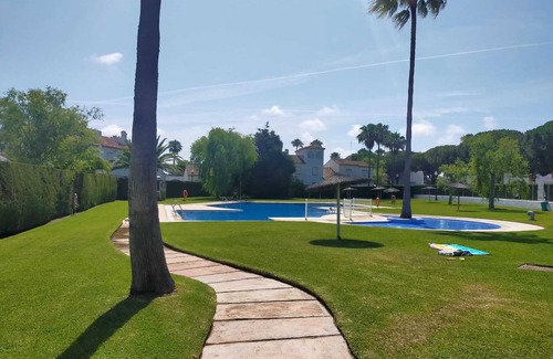 House in Residencial Zahara, Sancti Petri, with capacity for 5 people, with common areas, community pool, gardens and parking.