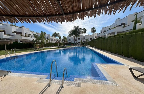 Lovely and cheerful apartment in San Juan de los Terreros, Andalusia, Spain with communal pool for 4 persons. The apartment is situated in a beach resort, in a residential and mountainous beach area, close to supermarkets and 200 metres from the beach.