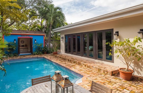 Just minutes away from Crandon Park Beach Club, Miami Seaquarium, and an array of restaurants and places to shop. You will also find that Casa Serena is just 15-30 minutes away from the trendy Brickell area, Miami International Airport, Coconut Grove, Miami Beach, and most of Miami’s main attractions. Totally renovated in 2015, no expense was spared by the owners while still maintaining its original charm. The perfect blend of new construction, and cozy furnishings make this home the ideal vacation property for family and friends. Features a split floor plan with a spacious master suite which includes an impressive bathroom, with a glass door rain shower plus a tub/shower, on one side, and 3 bedrooms with a shared bathroom, on the other. Also, open lounging spaces overlooking the pool plus an outdoor shower behind the pool, facing an informal patio/dining area.