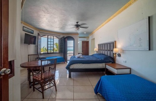 Cama individual + Cama matrimonial , acceso directo a la alberca, vista al mar, closet, aire acondicionado , baño privado , entrada por family room