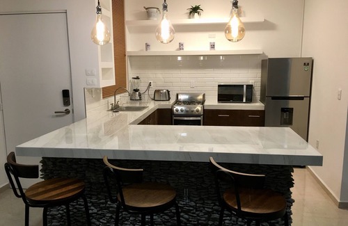 Luxury home. It was built in January 2018, everything in the house is hotel quality - the mattresses, the bed sheets, towels etc . Big fridge to accommodate your food, comfortable living room, huge countertop/ bar to prepare and enjoy your meals, and spacious nice bathroom. Just 5 min from the beach by car. The “colectivo” (taxi van), that takes you to the beach (50 US cents), passes by just in front of the house. There is a sports field a block away should you feel the need to go for a run etc. There a several local restaurants/eateries within walking distance. Grocery store, ice cream parlor, taco stands and small convenience store also within walking distance. Couple of laundromats within a block. Two big supermarkets are 1-2 min away by car or colectivo. The home is equipped with high quality US/Canada standard hot water tank(not the ones on demand that sometimes work and sometimes don’t) 2 Air Conditionings. Decent water pressure, plenty of lights, internet connection of 10mbps download and upload. Security camera at the front of the house and security door sensors to give you that extra piece of mind. Pets are welcomed at $8.50 per night.