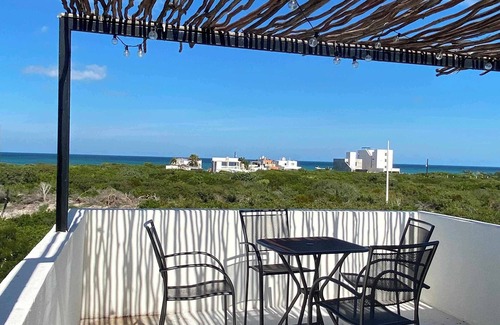 Nestled in the quiet fishing village of Chuburna, less than 250 meters to one of the most breathtaking beaches in the Yucatan. Wake to the astonishing view of the Gulf in the 2nd floor main with king bed and ensuite bath. Your guests will have the luxury of their own casita featuring a king bed.