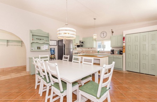 Experience the charm of Casa Tres, a cozy, family-friendly bungalow just a short 4-minute stroll from the beach. This inviting home features a spacious master suite with a queen bed and a kids’ room with twin bunk beds and a nearby bathroom with a bathtub. Stay comfortable year-round with air conditioning and ceiling fans in every room.