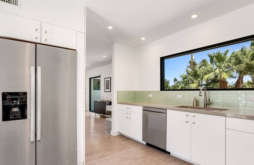 This completely walled compound is for your privacy, the lovely setting features an optional heated pool and spa, lounge chairs, conversational seating, fire pit, plenty of umbrella coverage, al fresco dining and a built-in natural gasBBQ grill. The best part is the truly spectacular mountain views. It has all the amenities you want on vacation - it’s the perfect place for living the Palm Springs Lifestyle!