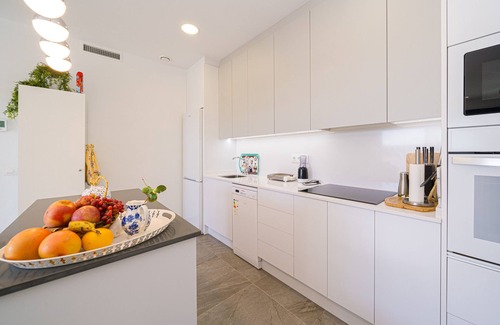 In the vitroceramic open plan kitchen, refrigerator, microwave, oven, freezer, dishwasher, dishes/cutlery, kitchen utensils, coffee machine, toaster, kettle and juicer are provided.