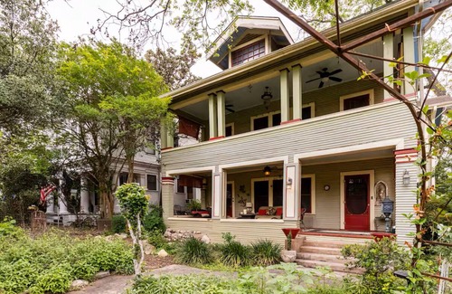 This second floor 2 bedroom 1 bath full apartment (private Kitchen, dining room, living room) is near downtown (The Alamo), Fort Sam Houston, Convention Center (10 minutes, 2.2 miles) and close to the spectacular RiverWalk Extension and The Pearl Brewery. The Children's museum is in walking distance. The apartment is in a unique turn of the century structure with full garden and outdoor terrace to enjoy nice SA's evenings and morning coffee
