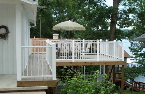 Guests enjoy a private deck that is directly off the Living Room, with its large patio furniture set and gas grill. An additional lakefront rock patio is shared by both the Casablanca and Crownview guests. This area is fantastic for watching the passing boat traffic and enjoying the afternoon shade. The property also has a private covered swim dock with ladder, sun deck and patio furniture. The water level is very deep off the dock and fishing is ideal anywhere along the shoreline.