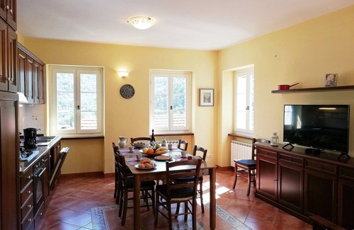 This apartment is definitely suitable for lovers of open spaces. In addition to the private terrace, La Ginestra also has a garden with sun loungers, barbecue and gazebo with table and chairs. This garden is in common use with the apartment La Bottega del Fabbro.