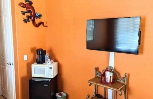 Our casita is equipped with a well-appointed kitchenette, providing everything you need to prepare simple meals and enjoy a leisurely breakfast before heading out to explore the local attractions.