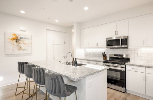 The property will be stocked with an initial supply of trash bags, paper towels, kitchen sponges, hand soap, dish soap, and toilet paper. The property is equipped with a specific quantity of bath and pool towels to accommodate the max occupancy of the home. The bathrooms are stocked with shampoo and conditioner. There are also fully equipped laundry rooms with a washer, dryer, and iron.