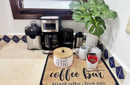 Experience the perfect blend of barefoot luxury and natural beauty at Casona Palms, a beachfront villa set on one of the last undeveloped stretches of the Mexican Caribbean near Mahahual (Costa Maya). With 3 beautifully appointed bedrooms, 3.5 baths and room for up to 8-10 guests, this serene hideaway offers privacy, comfort, and access to some of the region's most spectacular natural wonders. Crafted with natural materials and a commitment to comfort, Casona Palms features custom concrete architecture, hand picked decor, and luxury textiles throughout. Every space has been created to offer a comfortable coastal experience. Open concept great room with ocean views and hand carved furniture with 3 double doors to the outdoor terrace and direct access to 185 feet of private beach. The fully equipped kitchen provides cookware, Ninja blender, juicer, microwave, coffee maker and grinder, full size refrigerator and toaster plus all new tableware, cutlery and handblown Mexican glassware. The dining area seats 8 plus island seating for 6 - perfect for group meals. Wake up to the sound of the ocean and palm trees with sweeping views of the Caribbean from the private bedroom suites which include the Main Villa: second floor Master Suite with king bed, ensuite bath with double vanity and large walk-in shower, private oceanfront terrace with daybed and seating, gel memory foam topper, 650 thread count linens and down pillows and comforter, sleeps 2. Main Villa: second floor Double Guest Suite with two full beds, ensuite bath with double vanity and large walk-in shower, private ocean terrace with 2 sun loungers, 500 thread count linens, down/down alternative pillows and down comforter plus couch that converts to single bed, sleeps 4-5. Detached Casita: private main floor king suite with ocean view patio and seating area, ensuite bath with double vanity and large walk-in shower, gel memory foam topper, 650 thread count linens, down pillows and comforter, sleeps 2. Enjoy outdoor dining on the expansive oceanfront terrace with handcrafted wood dining table and chairs to seat 8 plus wood loungers. Beachfront grill and outdoor shower with 4 barstools for lounging while you grill - caretaker will light the grill at your request and can help source fresh fish and lobster in season. Shaded king beach bed, perfect for ultimate relaxation plus hammocks and loungers for beach lounging. Activities include beach volleyball - set up on request, 2 kayaks and 2 paddleboards for exploring the calms waters, swim spots and snorkeling just steps away (walk north to find deep sandy bottomed swimming spots) plus fishing and snorkeling at the reef which is approximately 500 yards off our beach. Don’t miss the amazing stargazing at night and breathtaking sunrises. Our villa is seamless off-grid living and is designed to operate sustainably without sacrificing comfort. The villa has a solar powered energy system with backup generator, filtered rainwater system with 10,000 gallon cistern (plus bottled drinking water provided), Wi-Fi via Starlink for reliable internet and Wi-Fi calling. Please note there is no A/C as the home was custom built for natural ventilation, with breezy crosswinds and fans in every room. No television so bring a laptop for streaming or enjoy unplugged evenings by the sea. Your stay is supported by our discreet, full time caretaker, who lives on-site in a private residence with his wife. He provides daily beach raking and clean-up (note that during sargassum season, it can be difficult to clear the beach completely depending on currents and wind), daily trash removal, fresh towel/linen service upon request and grill prep and sourcing local seafood (charcoal briquettes provided). Optional laundry service is available on Saturday and must be arranged with caretaker for an extra fee. Optional meal services available for evening dinners and on weekends for an extra fee. Explore the nearby activities in Mahahual which is just 35 minutes away. The vibrant beach town of Mahahual offers a mix of local charm and tourist amenities. Walk the Malecon, a beachfront promenade with casual restaurants, beach bars and markets. Take a dive or snorkeling trip to the Mesoamerican Barrier Reef, the second largest reef in the world. Book a fishing charter or paddle board lesson. Massages are available on the beach daily at many locations on the Malecon. Visit nearby Bacalar to see Laguna Bacalar, the lagoon of seven colors (saltwater lake ranging in color from light turquoise to the deepest blue). Spend a day exploring the nearby Mayan ruins. Our guest book will provide more information on dining, shopping and tours. Special note: This villa has been on Vrbo in the past by the previous owner with 10/10 reviews. We are the new owners and have been working hard this summer on updates and improvements to make your stay even better. Mexico is a special place to us and our goal is to provide you with a lovely beachfront stay with great communication and service! Car rental is recommended. We are a 2.5 hour drive from the new Tulum International Airport or 4 hours from Cancun International airport. Maya Tren (train), ADO bus and private transfers are available. Mahahual has taxi service for local transportation.