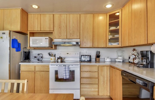 This beach house offers 4 bedrooms and 3 bathrooms. The master bedroom features a Queen bed and en- suite bathroom. The second bedroom offers a Queen bed and the third offers a Queen bed. These bedrooms share a bathroom. The fourth bedroom offers 2 Twin beds, and has a shared bathroom down the hall. If needed, a double futon is in the sunroom. Two decks provide space for a barbecue and a large hot tub. The main living area on the upper floor is a spacious sunny area with connecting living room, sunroom (family room) and fully equipped kitchen. All of these rooms offer incredible views of the Russian River estuary.