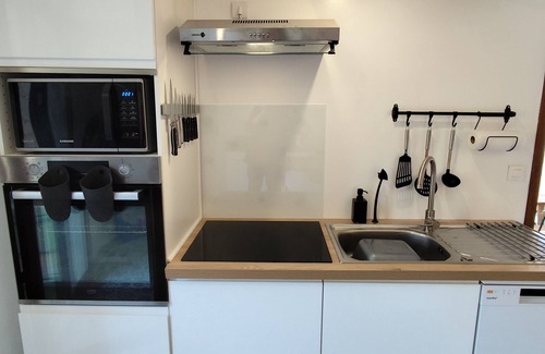 A new conversion of a stone barn in a small village in the southern Pyrenees . 1.2 km from the village of Molitg Les Bains, 9 kms from Prades and 45 mins from the mediterranean city of Perpignan. The building overlooks a small river with a picnic area where the mountain water can be enjoyed