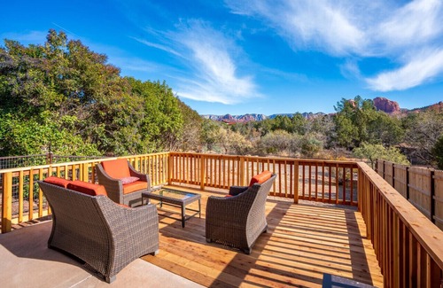 Welcome to our two bedroom home located in Sedona near Red Rock State Park. The property is tucked away in a rural neighborhood where you can enjoy serene views of Cathedral Rock. The property features a private deck, perfect for enjoying the sunshine and stargazing.