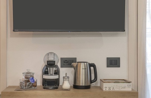 The sleeping area includes an elegant and welcoming double bedroom, also with direct access to the balcony and equipped with a TV, as well as a second bedroom with two single beds, ideal for children or teenagers. To complete the house, a modern bathroom with shower and washing machine, designed for maximum convenience during the stay.