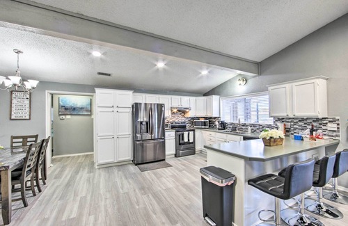 Lakefront living is right around the corner when you escape to this striking vacation rental. Boasting 5 bedrooms, 2 bathrooms, and a 2-tiered boat dock, this incredible home guarantees an unforgettable excursion, no matter how you choose to spend your time. Round out an action-packed afternoon on Cedar Creek Reservoir with a meal at Main Street Bar & Grill - just 1 mile away! With its sprawling deck space, private yard, and fully equipped kitchen, this stunning Texas abode is a must-stay.