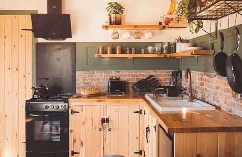 Bedroom: Kingsize (5ft) Bed Ensuite: Cubicle Shower, Heated Towel Rail, Toilet. Electric central heating (underfloor in living room, dining room and kitchen), gas, electricity, bed linen, towels and Wi-Fi included. Welcome pack. Grounds with sitting-out area and garden furniture (shared with other properties on-site). Wood-fired hot tub for 2 (private). Private parking for 1 car. No smoking. Please note: No children. Property is accessed by footpath only. There is a brook close to the property. . Escape to a tranquil haven nestled within a stunning wildflower garden just outside the charming town of Ilminster in Somerset. Discover Oakwater Escapes, two handcrafted lodges, Waters Edge (ref UK44426) and Cedar Lodge (ref UK44425), each designed to envelop you in an ambience of romance and luxury. Whether you seek a romantic getaway for two, or a blissful break with your furry friend, each lodge offers the perfect escape.