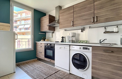 In shades of green, all in harmony and softness, this bright apartment with natural wood and materials will soothe you and bring you the serenity you need. Ideally located in the heart of the city, between the old town and the beaches, it offers easy access to the seaside while being close to all shops. Everything is within walking distance.