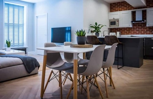 Perfect for couples, friends, families and business travel. 2 double bedrooms with award-winning Emma mattresses. Fully equipped kitchen with Neff/Bosch appliances. Sliding sash wooden windows with shutters. Desk/workspace with free WiFi. Flatscreen smart TV. Modern bathroom with walk-in shower and LED lighting.