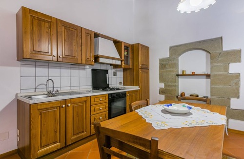 Certina is made up of 2 buildings: the owner's house and another building with 4 independent apartments. The buildings are surrounded by a stone courtyard. Thers is a wood with firs, pines, olive trees and chestnut trees and paths for walking or mountain biking. Very old country house "Certina", 510 m a.s.l renovated, surrounded by trees. 13 km from the centre of Pontassieve, 30 km from the centre of Firenze, in a quiet, elevated position on top of a hill, in the countryside. For shared use: property 33 ha, garden, swimming pool fenced (6 x 12 m, depth 130 - 160 cm, seasonal availability: 06.May. - 23.Sep.) with internal staircase. Outdoor shower, barbecue. Private: terrace, garden furniture. In the house: central heating system, washing machine (for shared use), heating to be paid on the spot, heating available only from 01.Nov. - 07.Apr.. Linen change weekly. Room cleaning on request (extra). Motor access to the house (1 km via unmade road). Parking at the house. Shop 5 km, restaurant 7 km, bus stop 4.7 km, railway station "Pontassieve" 13 km.