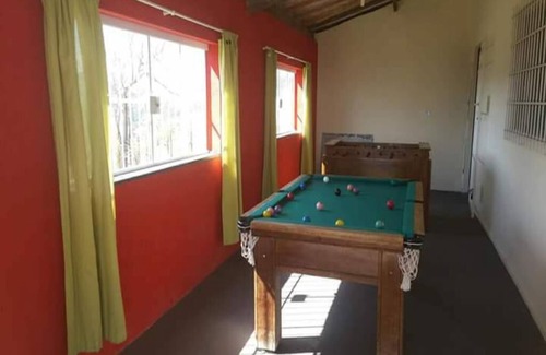 Balcony with barbecue and freezer, wood stove. Game room, cable TV, pool with waterfall and ample parking.