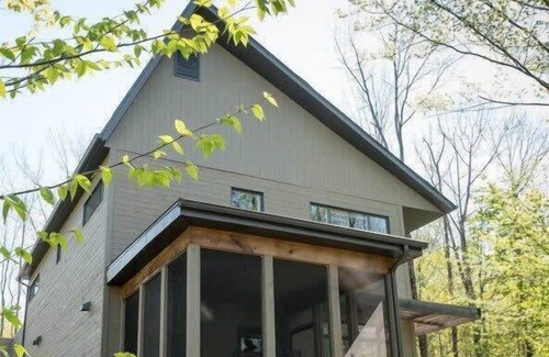 This chalet, on the backside of Mont-Orford Park, is situated on the immense 1000-acre Vertendre forest playground. This protected, private territory offers 2 lakes and a mountain where you can enjoy a wide range of outdoor activities right on the site. A perfect balance between ecology, innovation, and comfort.