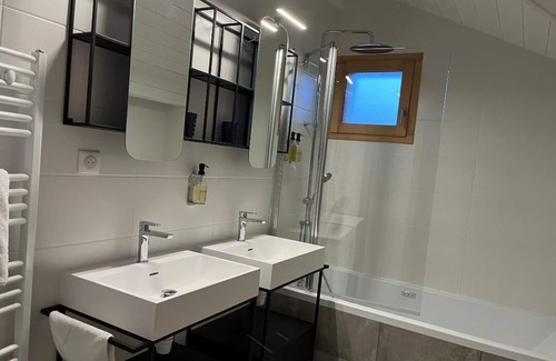 (Text automatically translated) Rejuvenate yourself in this cozy mountain chalet, located on the slopes. Perfect for holidays with family or friends, and enjoy the beautiful mountain scenery between the Vercors and the natural park of caskets. A mountainside, IDEAL for skiing and ballads and return on skis. Possibility to welcome 14 people: 6 Bedrooms (one bedroom suite) with shower and separate toilet. Jacuzzi + Sauna + fireplace for your comfort to return from skiing. The warm living space with kitchen, living room, dining room offers direct access to the large sun terrace, offering stunning views of the ski resort of Alpe d'Huez also called "Island in the sun ". The little touches on the spot:-Welcome to cottage with a glass of champagne. -We offer a typical mountain meal on your first evening at the cottage. Shipping breads and croissants every morning. -Ability to deliver meals at the cottage.