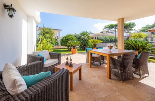 Welcome to the cosy Casa Margarita in rural style, only 170 m from the beach Playa de Muro. The single-storey holiday home has an air-conditioned living-dining room, a well-equipped kitchen, 4 air-conditioned bedrooms (3 with double beds, one with 2 single beds) and 2 bathrooms (one en suite) and can accommodate 8 people. Other facilities include Wi-Fi, air conditioning, a fireplace, satellite TV, a baby cot and a highchair. The green private garden with numerous Mediterranean plants offers a furnished terrace and a barbecue area. Comfortable sun loungers also invite you to enjoy the Mediterranean sun to the fullest. Thanks to the ideal location you can reach shopping facilities, restaurants, bars, cafés and the fine sandy beach Playa de Muro within 5 minutes on foot. The town with its numerous canals also invites you for long walks and the public transport brings you directly to Port de Pollença, Alcúdia or Palma, so that you can spend a varied and relaxing holiday here.