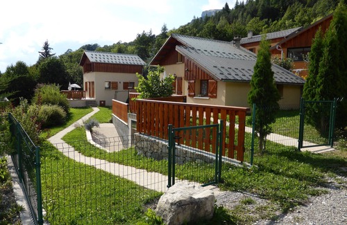 This chalet offers a private outdoor space with a garden, terrace, barbecue, and playground.