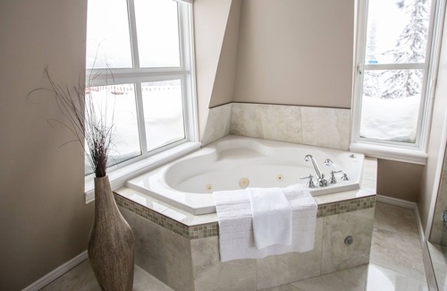 Relax in the hot tub while sipping a glass of wine and overlooking the village and ski runs or cozy up by the fireplace and take in the breathtaking view. TubeTown, Bowling Alley, Adventure Centre, Gym and Skating rink are open in the evenings and just minutes walk away.