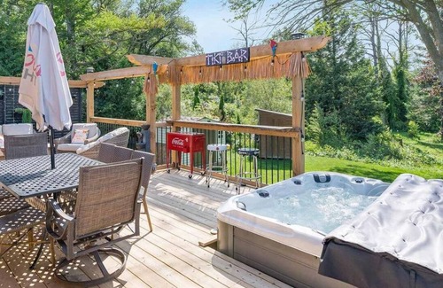 Enjoy the brand new built deck with built-in fully loaded brand new 6 person hot tub for you to enjoy after a long day of skiing or simply to relax and breath in the fresh air surrounded by trees and total privacy!!!