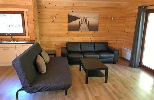 Unwind in this stylish, recently built wooden chalet tucked away in the peaceful, wooded holiday park of Oignies-en-Thiérache. Blending natural charm with modern comfort, this cozy hideaway offers a bright living room with cable TV, DVD player, and a comfy double sofa bed. The open kitchen is fully equipped with an oven, microwave, fridge-freezer, coffee machine, and dishwasher—perfect for preparing group meals. With three bedrooms (double bed, bunk bed, and two singles) and a sleek bathroom with a shower and separate toilet, the home is best suited for six guests, though it can sleep up to eight. Step outside and let nature do the rest. The private terrace features a picnic table and barbecue—ideal for slow breakfasts or evening cookouts under the trees. Located in the lush Namur region, the surrounding holiday park offers direct access to forest trails and serene walks. With your own parking spot right outside the door, exploring the Ardennes and nearby sights is as easy as it is scenic. After a day in nature, indulge in the regional flavors of the Ardennes. Nearby villages offer charming brasseries, rustic cafés, and welcoming restaurants serving Belgian specialties like wild game, rich stews, and farmhouse cheeses. Prefer to dine in? Pick up local treats at a nearby market and enjoy them right on your terrace. It’s a perfect blend of forest calm and culinary charm.