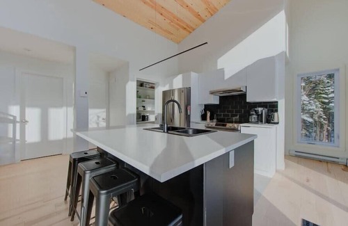 Chalet le 33 offers you a modern and warm atmosphere at Fief du Massif, an eco-responsible development in the mountains. A new peaceful destination in Petite-Rivière Saint-François, located near the famous Massif de Charlevoix, less than an hour from Quebec City. You will succumb to the charms of Charlevoix. The region is an unequivocal outdoor destination. Let Charlevoix tell you about nature in its raw state. Cultural richness, the different routes and tourist circuits of this dream environment will amaze you. Whether on the roads of the river, mountains, arts and crafts or motorcycle tourism circuits, you will be charmed during your getaway.