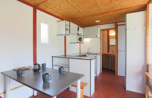 The chalet Standard 1 with step-free access and interior in Pleumeur-Bodou is the perfect accommodation for a stress-free holiday with your loved ones. The 30 m² property consists of a living room, a kitchen, 2 bedrooms and 1 bathroom as well as an additional toilet and can therefore accommodate 4 people. Additional amenities include a TV as well as children's books and toys. Furthermore, a table tennis table is available on the property. A baby cot is also available. This accommodation does not offer: Wi-Fi and air conditioning. This chalet features a private covered terrace for evening relaxation.