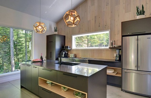 Welcome to our modern, luxurious chalet in the Tremblant mountains. This house welcomes guests with a feeling of openness and a clean flow of energy. Smooth concrete floors, light wood flooring, stainless steel and glass railings and high end finishes delight the touch, and natural light filters through the surrounding trees and expansive windows.