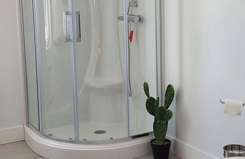 The kitchen is equipped with an oven, a stovetop, and a refrigerator, as well as a coffee maker, a microwave, and cookware. And thanks to the washer and dryer, you'll even be able to travel light.